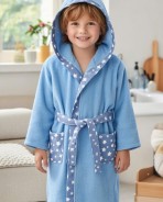 Touch Çocuk Bornozu Kız Erkek Kapşonlu Bornoz %100 Pamuklu MAVİ