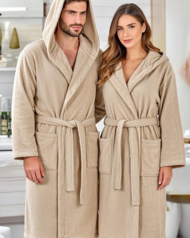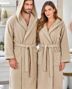 Kapşonlu Bornoz %100 Pamuklu Battal Boy (M-L-XL-2XL-3XL-4XL) BEJ