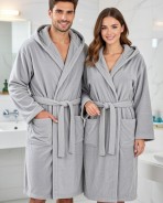 Touch Kapşonlu Bornoz %100 Pamuklu Battal Boy (M-L-XL-2XL-3XL-4XL) GRİ