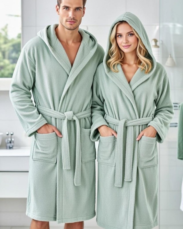 Kapşonlu Bornoz %100 Pamuklu Battal Boy (M-L-XL-2XL-3XL-4XL) YEŞİL